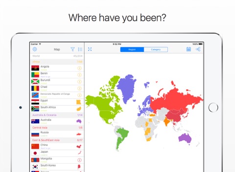 Mesmo com muitos mapas ainda assim alguns que estive ainda não tem. Na opção paga além de pintar o mapa do país poderia ter um pontinho de outra cor para sinalizar cada região do país que estivemos ao invés de ter que entrar em cada país para ver isso. De resto cumpre o que promete.