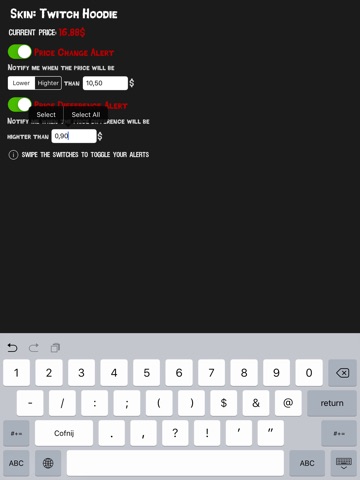 - Price change alerts - notify you when the price drops below or raises over your anticipated value