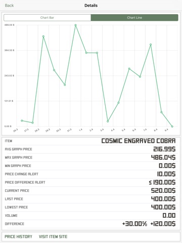 - Price history of the items – check how the price changed overtime, every price change is registered together with the exact time!