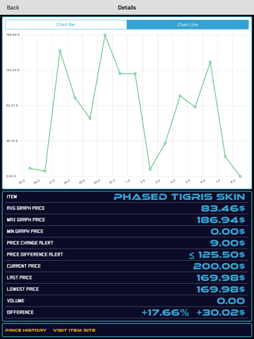- Price history of the items – check how the price changed overtime, every price change is registered together with the exact time!