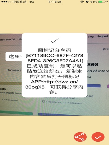 让您可以在图片上做标记,可以是言简意赅的文字,也可以是一段录制的语音。一键拍照+一键录音,快速完成问题记录。您拍下的图片、标记的问题,可以通过QQ、微信分享给您的同事和客户等。
