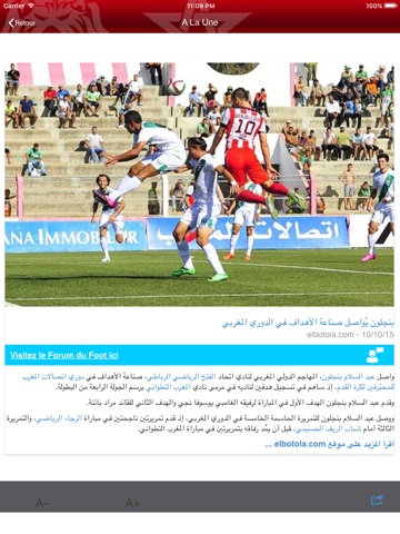 - 24/7 pour suivre toute l’actu du foot en direct (mercato, programme tv , formation entrante, choix dentraîneur, recrutement, évolution de l’effectif, commentaire en direct, tirage au sort des compétitions, élection du président, akhbar de l’équipe nationale marocaine, décisions de la fédération royale marocaine de football