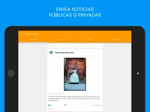 Envía noticias privadas para informar sólo a los falleros o sólo a los directivos. Envía noticias públicas para dar a conocer los actos de tu falla a todo el mundo.