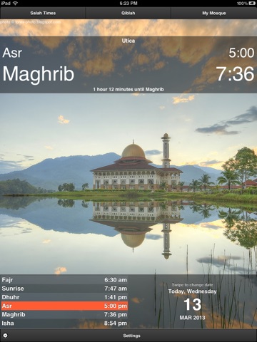 Islamic prayer times are our specialty. We offer local salat timings for your exact city, and can calculate using the various popular methods. You can get prayer alerts to remind you of azan timings, and alarms to remind you with 30 minutes left to pray salah. Never miss Fajr, Dhuhr/Zuhr, Asr, Maghrib, or Isha again!
