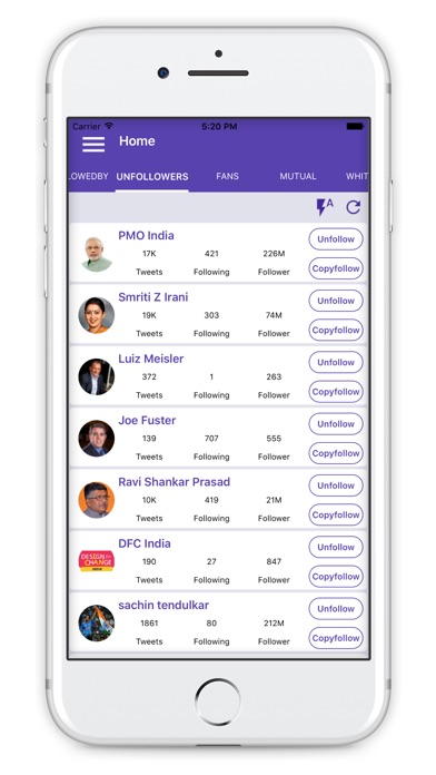 Find your unfollowers/followers/mutual followers and unfollow them in just a single click.