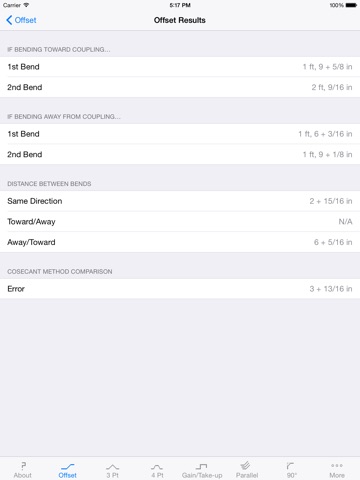 Master Bender uses a more precise conduit bending algorithm than the cosecant method that is commonly used in the industry. This gives you more accurate bends with less waste.