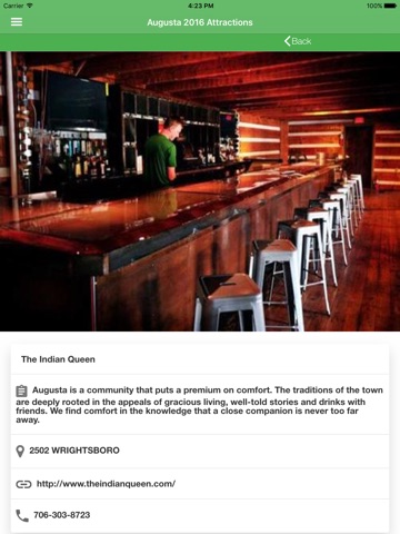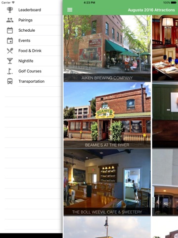 This multifunctional app allows you to quickly and easily view Restaurants, Bars, Golf Clubs, Taxi Services, Nightlife, Amenities, Masters Events, Leaderboard and Pairings in Augusta, GA. Not only can you view the best attractions and amenities Augusta has to offer, you can find the attractions nearest you from your iPhone/iPad provided by Google Maps or Apple Maps!