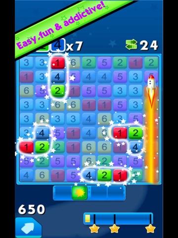 In Match 7 Stars, kids will find a fun and educational way to improve their adding skills, while young and adults will find a simple, entertaining & challenging puzzle that will keep them coming back for more!