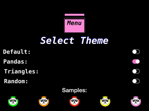 • Choose from the default colors, pandas or triangles to customize your game even further!