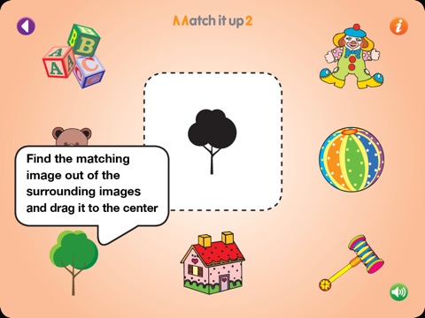 In Match it up 2, the match is made between visually related images. It is designed for children aged 2+.