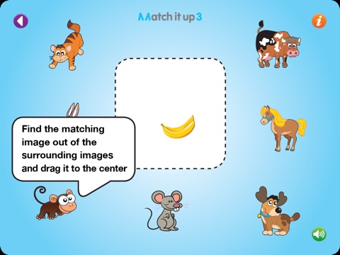 In Match it up 2, the match is made between visually related images. It is designed for children aged 2+.