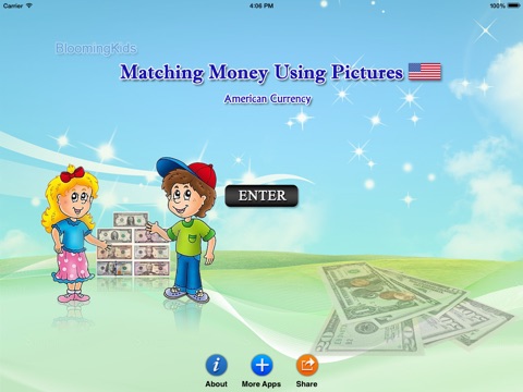 This program teaches the student to recognize a coin or bill and then match it to the same coin or bill shown below.This program can be used by kindergarten children or learning-disabled children of various ages.