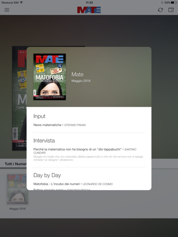 Grazie a questa applicazione potrai sfogliare e leggere ogni mese il nuovo Numero di Mate ed accedere a tutti i contenuti extra: video, photogallery e link.