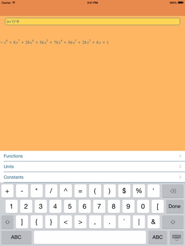 Can solve equations, derive and integrate functions, work with matrices, vectors, has currency converter