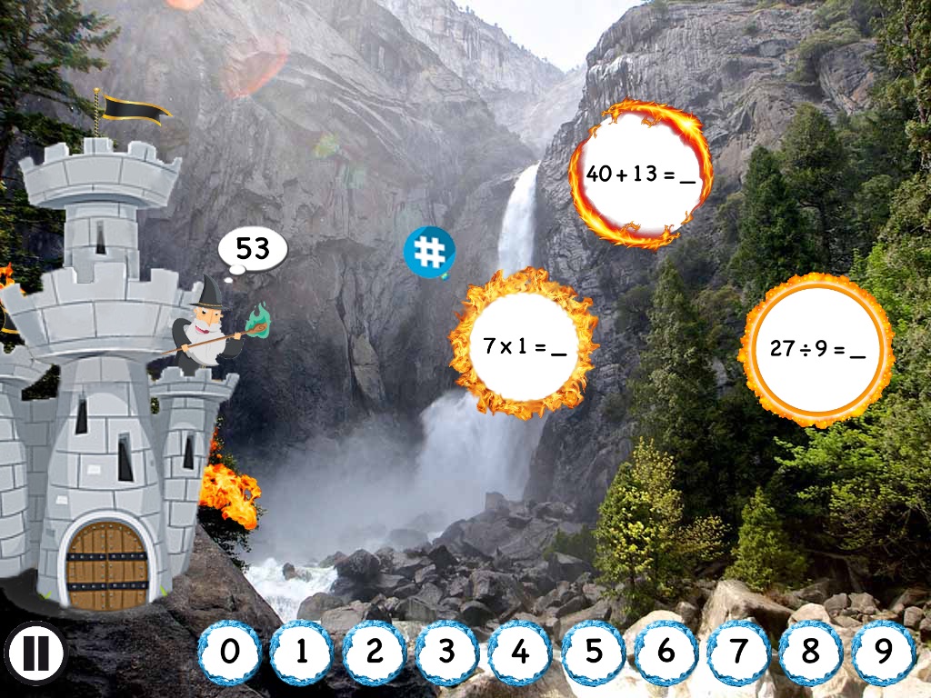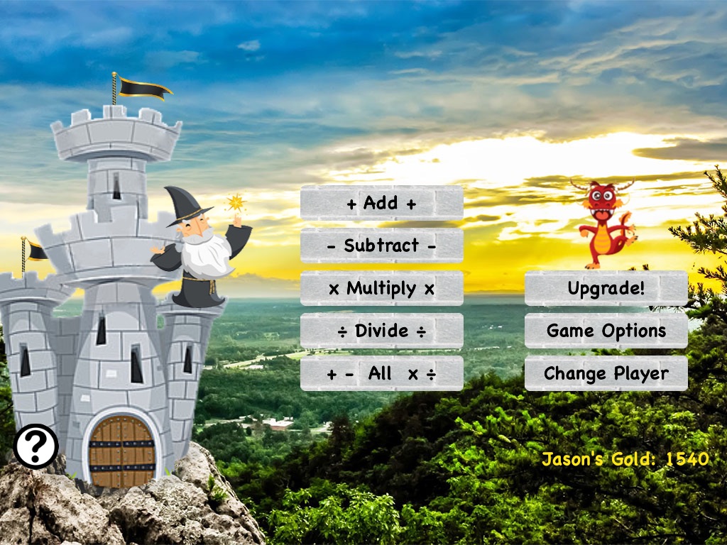 A dragon is attacking your castle with equation fireballs. Help your wizard solve them to stop the fireballs and earn gold. Use the gold to add upgrades to your castle, enchanting music and stunning kingdoms.