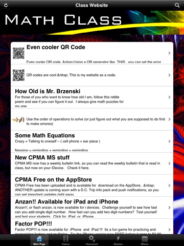 This app is for students of Mr. Brzenskis math class to quickly find information given on the many forms of digital media used in his classroom. It combines the three web services used in class inside of one application, easing the transition to using digital technology in the classroom. It also ensures another way of communicating key ideas to students from a teachers perspective.