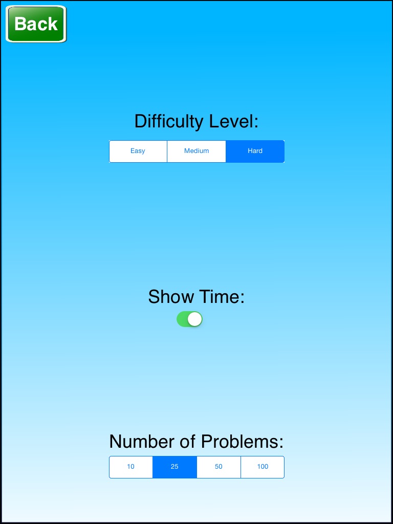 Math Flash Cards is a great way to learn and practice addition. Select the difficulty level and the number of problems in the "Settings" screen.