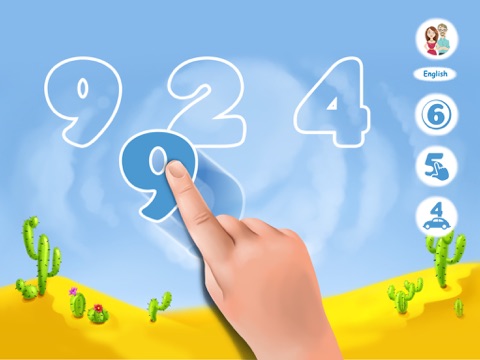 - Initially, children are offered to learn all the numbers from zero to nine. One of the numbers will appear in the center of the screen, followed by its proper pronunciation in the selected language. After that, the child will see three contours, of which only one corresponds to the number showed. The child will have to find the correct variant and drag his number to the chosen contour. If the choice is right, the number will flush with a bright color.