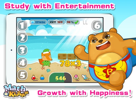 “Math Kingdom” is a parkour type mathematical adventure game designed by Stars Kingdom. The typical players are kids and children between 5 and 8. Players would act as cute characters of “Math Kingdom” to fight with different monsters. In order to reach the final goals, players need to correctly answer more mathematic questions.