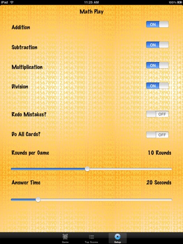 Set the timer and number of cards in the round.