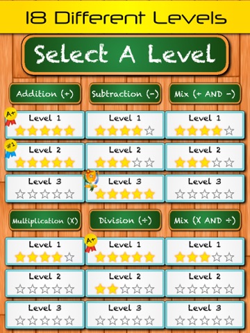 ** Features Addition, Subtraction, Multiplication, and Division. Theres also the ability to mix and match questions.