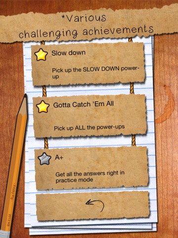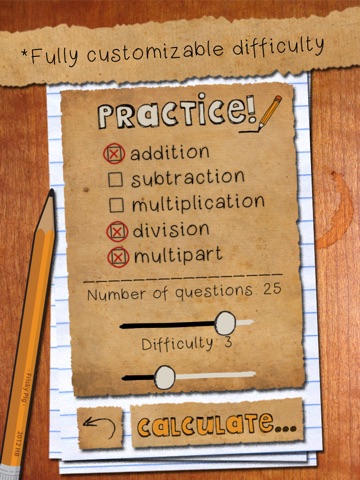 In practice mode you choose which mathematical functions you want to use, the number of questions and the difficulty. There are no leaderboards or power-ups for the practice game mode, because it is only meant for practice.