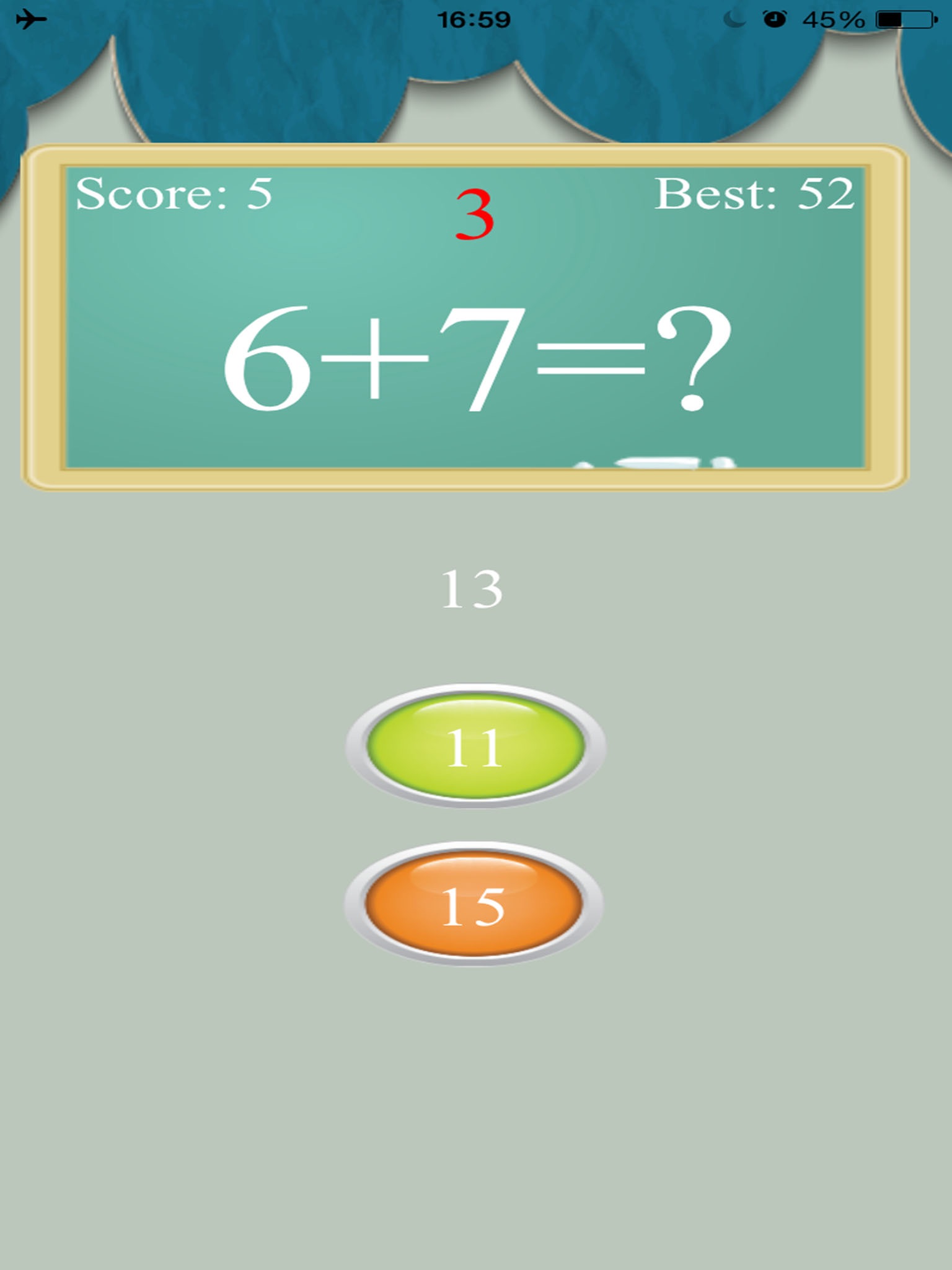 Math Skills 123 is classic game math quiz in 3s. You must choose correct choice in 3s. This game is help improve you math Addition, Subtraction, Multiplication, and Division skill
