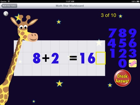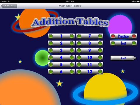 Math Star Tables allows you to work on your addition, subtraction, multiplication and division tables.