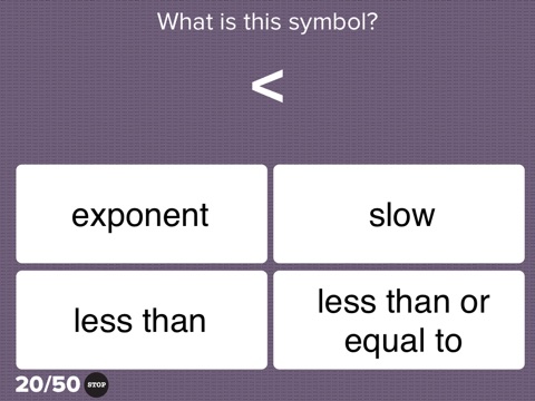 Math symbols are everywhere in the world around us. This free app helps you memorize and master your understanding of the different symbols so youre ready to face them in life or in testing.