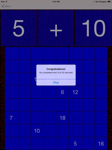 Sharpen your mind and practice your math with this simple, straightforward game! In arithmetic modes, two numbers appear on screen and your task is to calculate the answer and find it in the grid. At first there will be just one number in the grid, but after each level, more will be added making the difficulty greater and greater. Your goal: reach the target level (default: 100) in the fastest time possible.