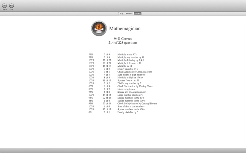 Une superbe découverte ! Les points positifs : + les explications sont claires et on les comprend bien même avec un niveau danglais standard + linterface est simple et sobre + le contenu est riche, je ne connaissait pas les 3/4 des astuces données ici + un entrainement spécifique pour chaque "leçon" Les points négatifs : - Pas (encore) françisé - Pas dentrainement "standard" utilisable pour réviser ses tables de multiplication par exemple (ma fille se reconnaitra). Un logiciel à mettre entre toutes les mains !
