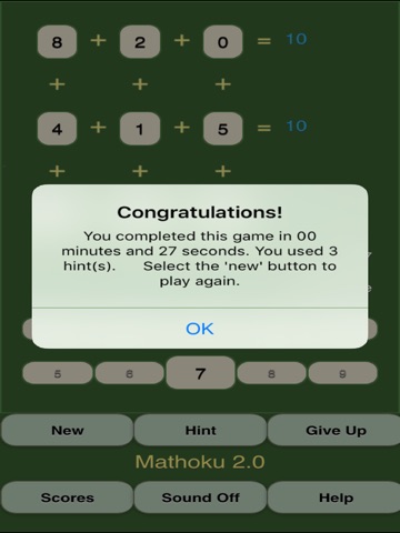 Created by a certified math teacher, Mathoku can help sharpen a child’s arithmetic skills as well as stimulate the logical mathematical minds of young adults. Fans of Sudoku, Twenty-four and Kenken will love it. There are five difficulty levels and the ability to ask for a hint when needed. The important mathematical concept of Order of Operations is enforced throughout.