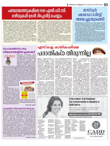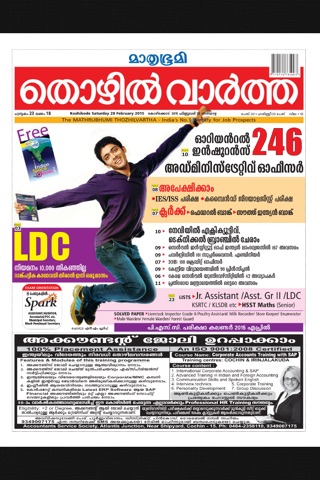 The first employment paper in Malayalam, Thozil Vartha, was an instant triumph among the youth of Kerala. Reporting almost all employment opportunities in Kerala, the publication proves to be an alternative to the States information cell in the service sector.