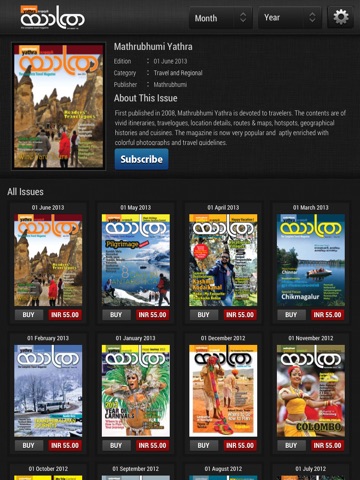 First published in 2008, Mathrubhumi Yathra is a storehouse of information for travelers. The magazine specialises in vivid itineraries, travelogues, location details, routes & maps, hotspots, geographical histories and cuisines. Enriched with colourful photographs and travel guidelines, the magazine is a hit among readers who love travelling for leisure or business.