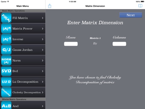 This app saved my life. All the other matrix apps I tried, did not work. But with this app, my math homework was able to be completed. Thank you. Goodbye.