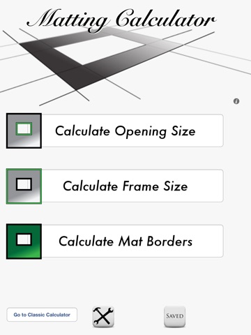 The Mat Calculator is a simple app that allows users to determine the missing information within their framing project. When I worked in a frame shop I found out that this simple calculation is often difficult for people to perform. When not performed correctly then it can lead to costly mistakes of needing to scrap incorrectly cut mats or the appearance of the mat is incorrect.