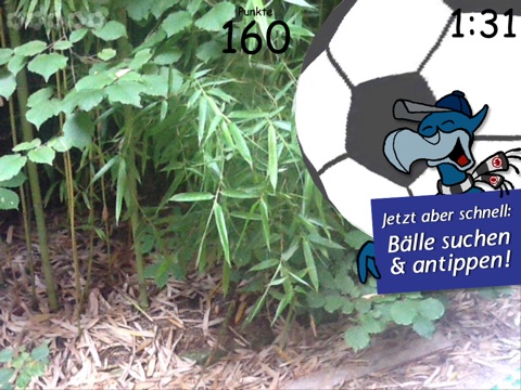 Wenn Du während der Spielzeit von 2 Minuten alle Bälle abgefeuert hast, wechselt das Spiel in den realen Modus und in Deiner Umgebung sind weitere Bälle versteckt. Bewege Dein iPhone durch Dein Umfeld, finde und sammle die Bälle. Hast Du 5 zusammen, kommst Du wieder in den Spielmodus, kannst weiter auf die Torwand schießen und Deine Punktejagd fortsetzen.