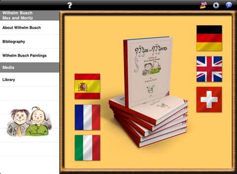 The app provides information about one of the most famous German picture books and its author, Wilhelm Busch. Among biographical and bibliographical data you find an overview of the paintings of Wilhelm Busch, as well as a library where you can download free samples of translations of "Max and Moritz" in various languages and the free full version of the German original version.