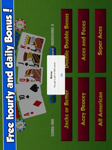 A fun and free Video Poker game you can just pick up and play anytime of the day. Easy for beginners and fun for competitive players too! Free daily and hourly bonuses so that youll always have chips to play.