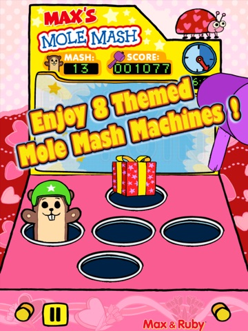 Help Max mash moles before Grandma gets home! Tap the screen every time a mole appears and watch as Max mashes them quickly back into their holes. Entertain your child for hours and hours with hilarious game play. Mash all the moles before time runs out to win!