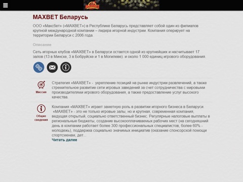 MAXBET – это крупнейшая сеть игорных клубов в Беларуси. Это современные залы, качественные игровые автоматы и электронные рулетки, а также огромное количество развлекательных мероприятий и концертов звезд белорусской и российской эстрады для постоянных посетителей MAXBET.