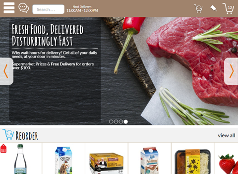 - Order fresh produce, frozen foods, dry aged steaks or wine, delivered in minutes