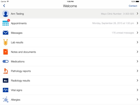 Excellent app and care at Mayo Clinic
