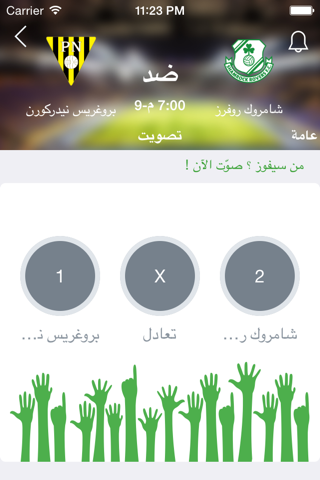 لاننسى أيضا أمكانية التنيبه على بداية مباراة معينة من خلال رمز الجرس الموجود داخل كل صفحة مباراة
