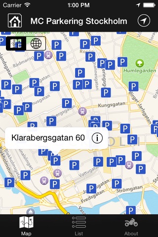MC Parking Stockholm makes it easy for you to find a parking spot for your motorcycle. 465 parking spots for motorcycles in Stockholm is included in the app.