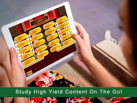 •After the successful completion of each level (need 70% to pass), the high yield facts tested are summarized in a few short sentences. Can play game anywhere! Game designed to be played in situations where normal study does not occur (i.e. as a passenger, on a plane, waiting in line at the grocery store, between classes, etc.)