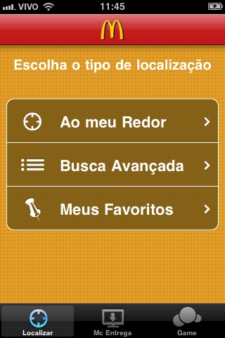 Além do localizador de restaurantes e do site de McEntrega você poderá jogar o divertido game Pop Ball!