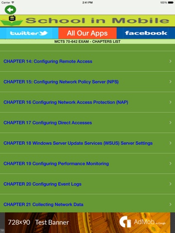 MCTS Exam 70-642 Free App giving access for 21 (100%) chapters and following quiz questions.
