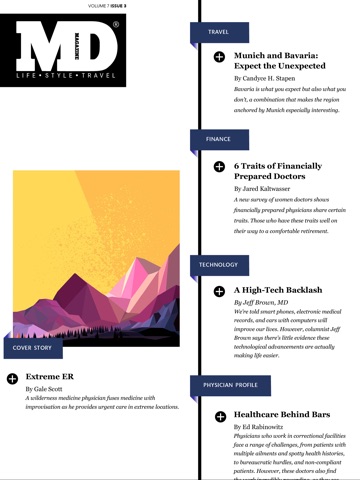 A nice idea for an App. The articles are interesting and a change from the mostly clinical content featured in many physician magazines.