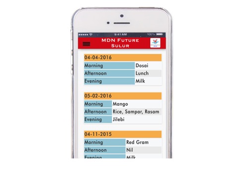 - Daily food menu such as Morning Snacks & Breakfast, Afternoon Lunch and Evening snacks can be viewed through this application.
